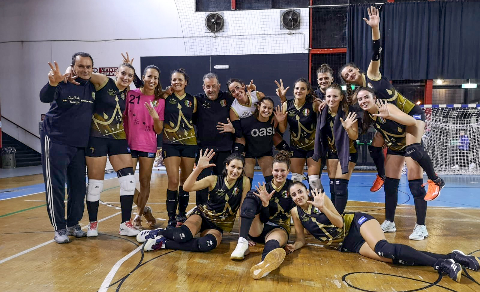 Bella prestazione delle nostre ragazze, ieri sera al Pardini Sporting Center che approfittano e liquidano facilmente per 3 set a 0 con i punteggi di 25 – 15, 25 – 21 , 25 – 22, anche un Casciavola rimaneggiato nella formazione base e a corto d’organico, che porta sul campo soltanto nove atlete. Sesta vittoria consecutiva dell’Oasi che ci proietta in cima alla classifica provvisoria a 17 punti, aspettando la partita di sabato prossimo con il Dream Volley. Niete male per una squadra che ha per obbiettivo primario la salvezza. Fischio d’inizio alle 21:00 in punto in una compagine che da tempo è un po' surreale, date le restrizioni dovute all’emergenza Covid. Francesconi schiera alla regia Lilli , opposto Risaliti, Bruno e Della Vedova al centro, capitan Torriani e De Santi di banda e l’ormai storico libero della squadra, Arduini. Partiamo subito forti e approfittiamo delle difficoltà in battuta e in attacco delle nostre avversarie che non riescono a trovare il campo in più occasioni, allunghiamo con i punti fino al 21 a 8. Entra Francesconi su Risaliti e Oshafi su Arduini, poi un colpo di orgoglio del Casciavola che ora sembra più determinata, ma è solo un fuoco di paglia, finisce 25 a 15. Secondo set con la stessa formazione iniziale e partenza nuovamente a razzo delle nostre con ottimi attacchi di De Santi e Torriani sulle bande, ma il Casciavola non molla e anzi riesce a restare incollata al punteggio con uno scarto minimo. Sembra che ci abbiano preso le misure soprattutto ai nostri centrali che vengono murati con più frequenza. 13 pari e il punteggio s’inverte passano avanti le casciavoline che allungano mettendoci in difficoltà, ma è sul 21 – 16 che dobbiamo elogiare le nostre ragazze che sotto di 5 punti usano la testa e ribaltano il risultato con un parziale di 9 a 1. Entra Francesconi su Risaliti. I pallonetti di Torriani e Bruno e le battute brevettate di Della Vedova sono micidiali. Gli errori delle avversarie infine compromettono un risultato che le vedeva avanti con un più 5. Finisce 25 – 21 e si ricambia campo. Ancora la formazione iniziale e set sulla falsa riga del secondo. Noi avanti e il Casciavola ad inseguire, ma non lontano, addirittura a 13 pareggiano e passano avanti. Sul 19 pari torniamo avanti noi che nel frattempo non abbiamo mollato e anzi abbiamo macinato punti con attenzione per portare a casa la partita, soprattutto con gli attacchi di banda. Entra Francesconi su Risaliti nelle ultime battute finali e dopo un ora e 23 minuti si conclude una partita gestita perfettamente dall’Oasi con una vittoria fortemente voluta da tutto il gruppo. Da segnalare le ottime ricezioni e difese di Arduini che appare in ottima forma, l’intelligenza tattica di De Santi e le ottime battute di Della Vedova. Dopo i singoli, però , va elogiato il gruppo, comprese le riserve che anche se giocano poco, sono l’ossatura della squadra. Con il loro lavoro di preparazione settimanale, permettono ottimi allenamenti a tutto il collettivo e questo si traduce in risultati positivi in campo il sabato. Il gruppo dimostra ancora una volta, se mai ce ne fosse stato bisogno, la grande preparazione atletica/ tattica che quest’anno sviluppa, nonostante l’inserimento delle giovani atlete come voluto dalla Società. Ora godiamoci un primo posto in classifica sicuramente meritato e voluto, arriveranno momenti difficili ne siamo certi, ma il gruppo è pronto ad affrontarli. Prossima partita a San Giuliano contro il Dream Volley alle 21.00 sabato prossimo.